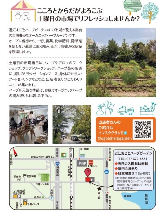 びわ湖が見える高台の自然豊かなオーガニックハーブガーデン「近江おごとハーブガーデン」にてマルシェが開催されます!