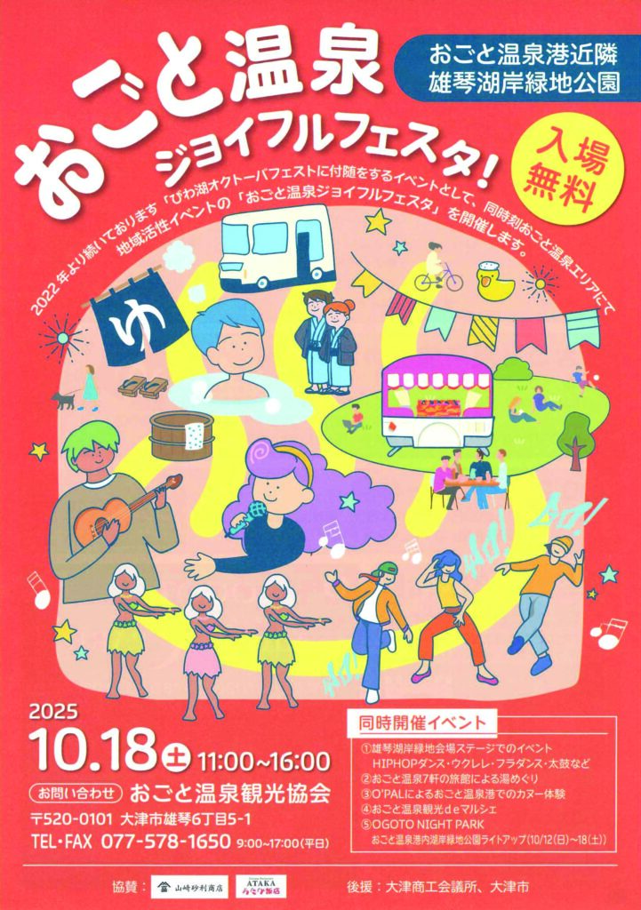 「びわ湖オクトーバーフェスト」が開催される10/18(土)は、同時刻おごと温泉エリアにて地域活性イベント「おごと温泉ジョイフルフェスタ!」も開催!