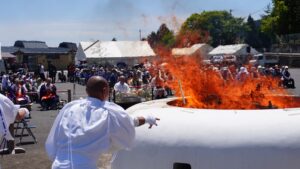比叡の大護摩とは、延暦寺でも最大規模の大護摩供法要です。比叡山 西塔・峰道広場の伝教大師尊像前にて千日回峰行大行満大阿闍梨を大導師に仰ぎ、世界平和・人類共生と皆さまの新願成就をお祈りします。