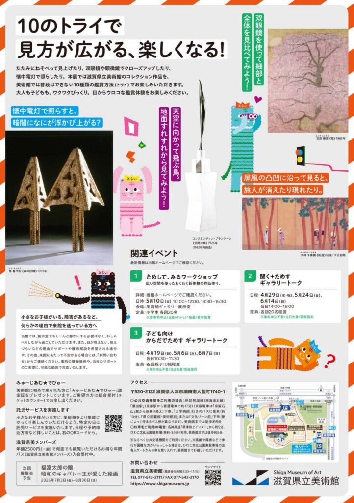 滋賀県立美術館のコレクション作品を、美術館では普段できない10種類の鑑賞方法(トライ)でお楽しみいただけます!