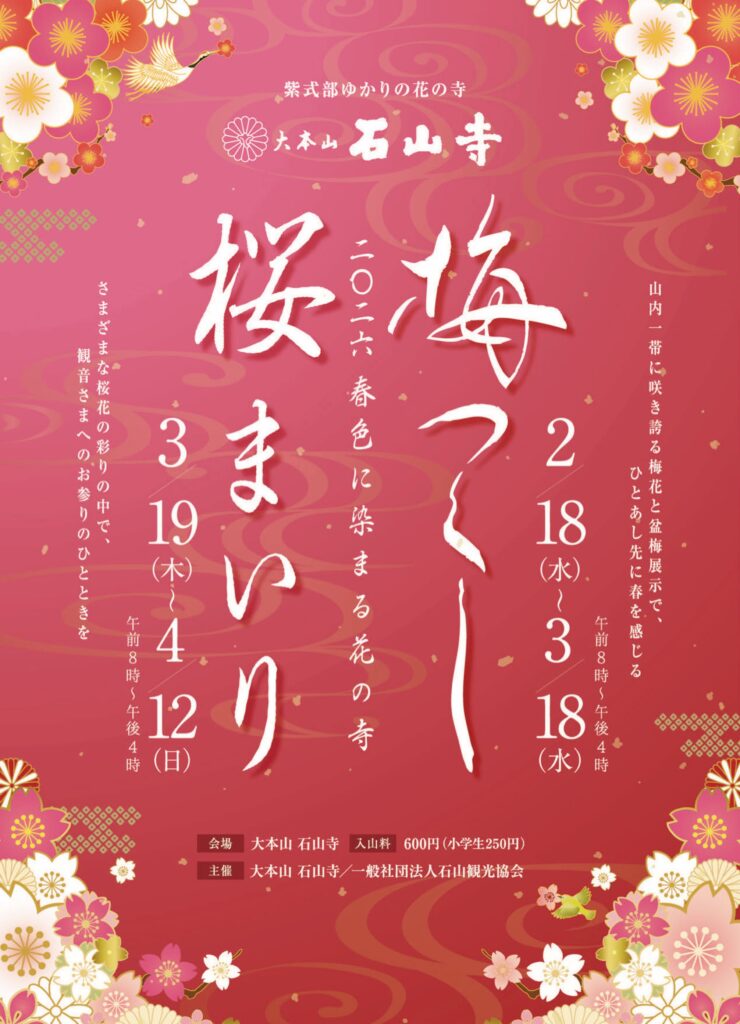 また石山寺門前では、梅や桜にちなんだお食事や甘味、お茶などの「梅・桜のおもてなし」もお楽しみいただけます。