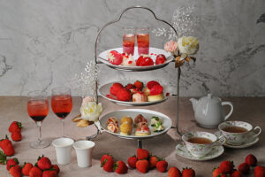 滋賀県初のオリジナルいちご「みおしずく」を使用した、ジュエリーのように輝く「まるでいちごムース」やストロベリーのヴェリーヌ、さらにサクサク食感のストロベリークッキーシューなど、華やかなスイーツをご用意いたしました。近江牛とポテトのクロケットやカブのポタージュなど温もり感じるセイボリーもご堪能いただけるアフタヌーンティーとともに、びわ湖を見渡す絶景のロビーラウンジで、優雅な午後のひとときをお過ごしください。〈90分のフリーフロー付き〉