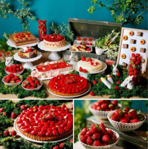 琵琶湖ホテル2階「レストラン ザ・ガーデン」の『苺の森のアトリエ』がテーマのいちごスイーツビュッフェ。自然あふれる景色の先にあるアトリエで、いちごを使った多彩なスイーツの世界が広がります。滋賀県産いちご「みおしずく」を使用した 30cmのいちごタルト に、フレジエ や チーズケーキ など、パティシエこだわりのスイーツがずらり。さらに、フレッシュないちごを楽しむ 国産苺の食べ比べ3種 も食べ放題。
