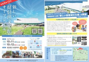 大津祭の日に、曳山が巡行する町にほど近い滋賀県庁において、特別なブースを出展。令和9年開館の新しい琵琶湖文化館に関するパネル展示や、館蔵品をモチーフにしたワークショップが開催されます。