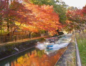 深まる秋の疏水を船で進み、大津へ向かいます。