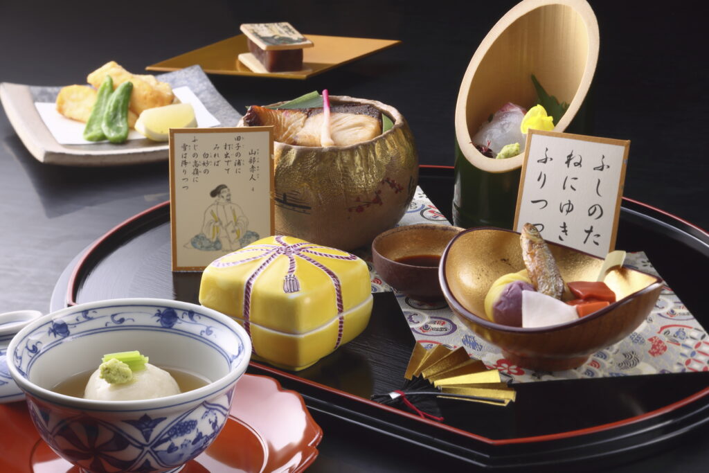 "かるたの聖地・大津"ならではのおもてなしとして、百人一首と食を融合させたメニュー『百人一首ランチ』。新春のお祝いに、雅で華やかなお料理をお楽しみください。