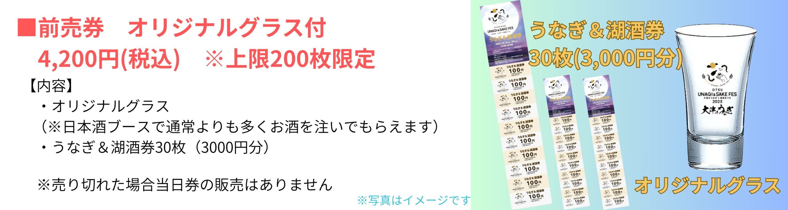 ■当日券【オリジナルグラス付うなぎ&湖酒券30枚綴り】・・・4,500円(税込)